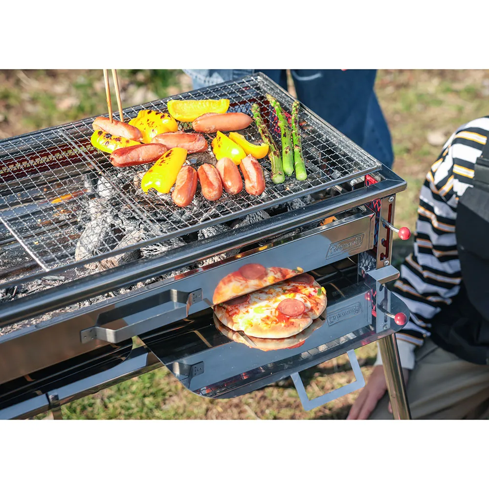 焼き面下には冷凍ピザやトーストが焼ける簡易オーブンのほか、炭の継ぎ足しがしやすい引き出し式ロストルも付いています。