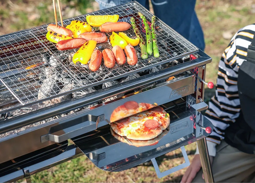 バーベキューグリルのオススメは「クールスパイダープロ/L ブースト」。焼網の高さが4段階に調節できるため食材を焦がしにくく、火力のコントロールをしやすいのが特徴です。焼き面下には冷凍ピザやトーストが焼ける簡易オーブンのほか、炭の継ぎ足しがしやすい引き出し式ロストルも付いています。