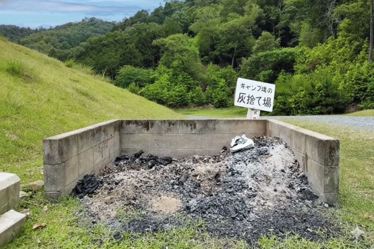 灰捨て場の設備があるキャンプ場を選ぶことで、あとかたづけを適切にすることができます。焚き火に慣れないうちは、灰捨て場のあるキャンプ場に絞って利用することをオススメします。