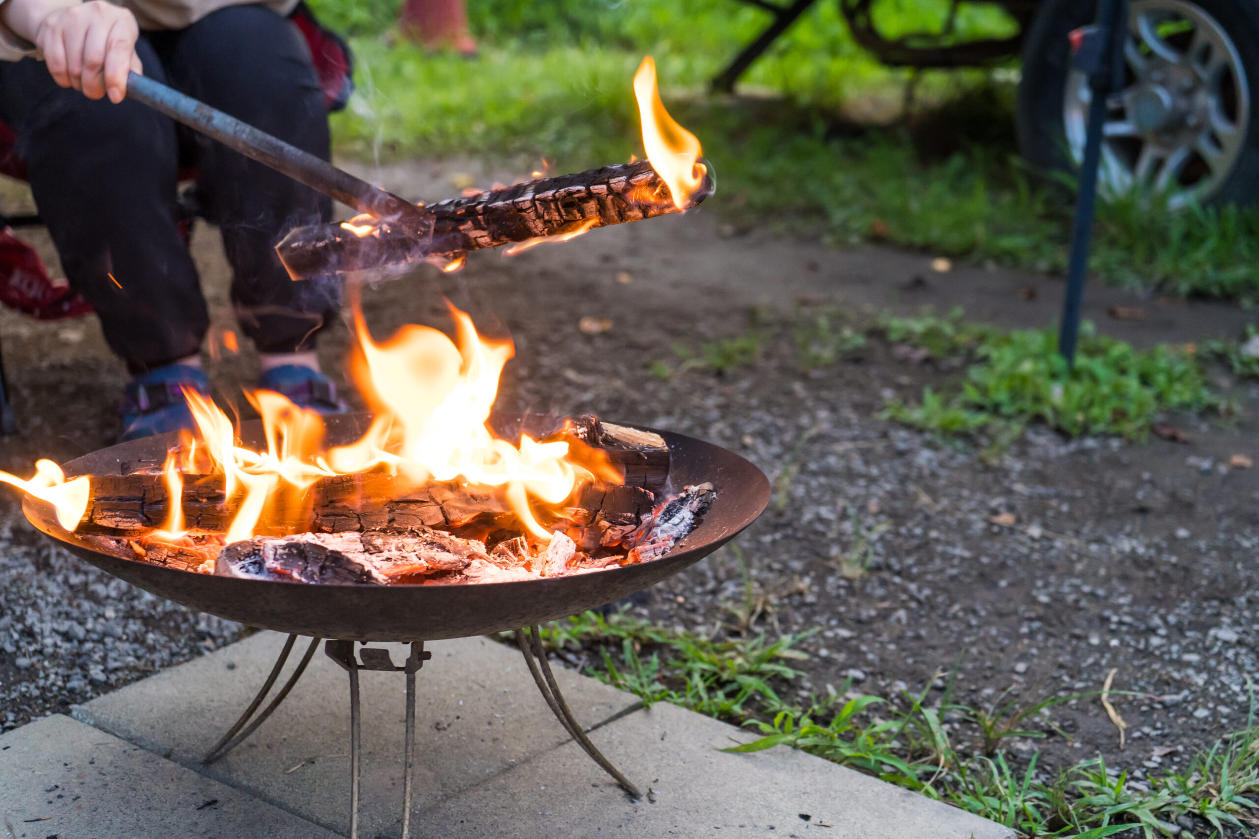キャンプの焚き火といえば夜のイメージがあるかもしれませんが、デイキャンプでも楽しめるものです。揺れる火を眺めるだけでもリラックス効果があるといわれています。