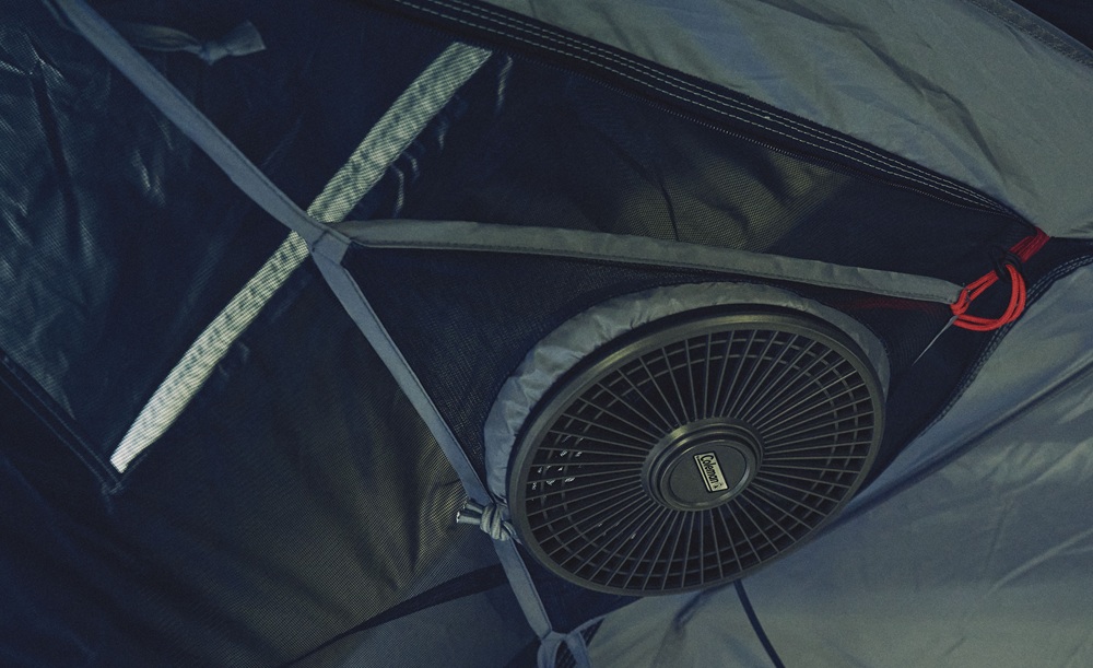 コールマンの「リバーシブルファンベンチレーション」は、専用テントに装着できる電動ファンで、内部の空気を効率よく入れ替えられるため、テント内でも快適な眠りをサポートします。