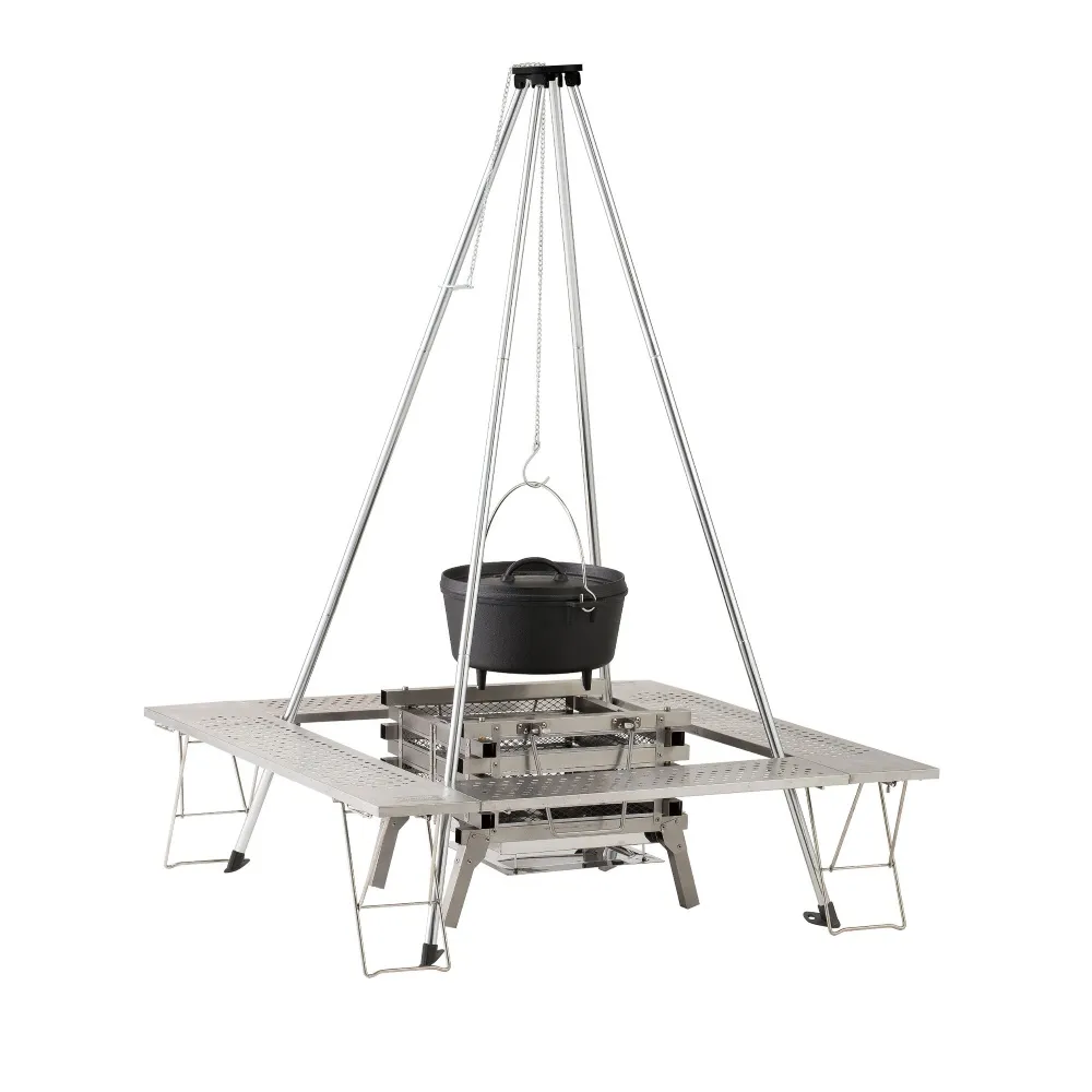 4本脚の焚き火用スタンドで、耐荷重20㎏でダッチオーブンも吊るせます。チェーンの長さはストッパーで調節可能で、火加減調整も簡単です。焚き火の熱を利用してさまざまな料理を楽しめるでしょう。