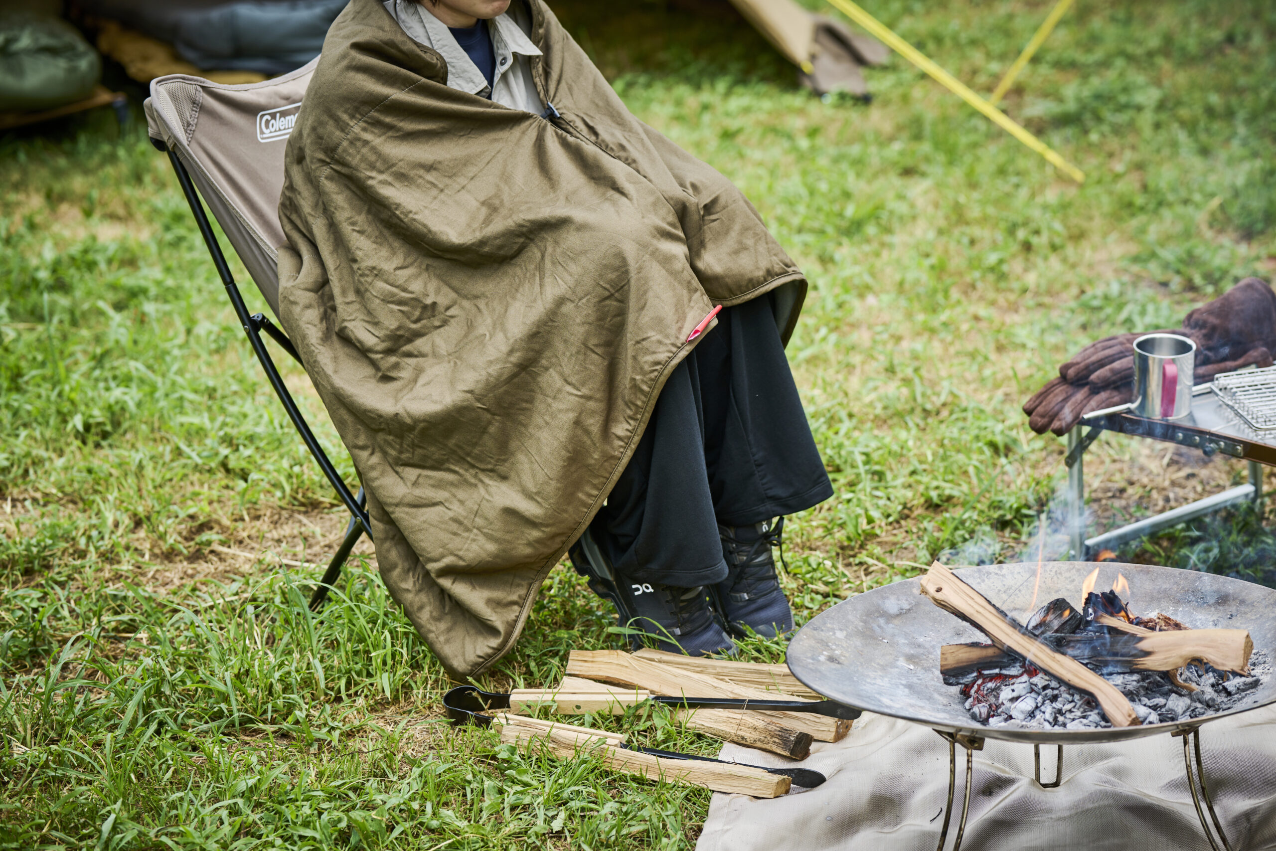 トグルボタンで肩を留めればポンチョとして羽織れ、夕方や早朝の冷え込みでも体温を守り、暖かく過ごせます。