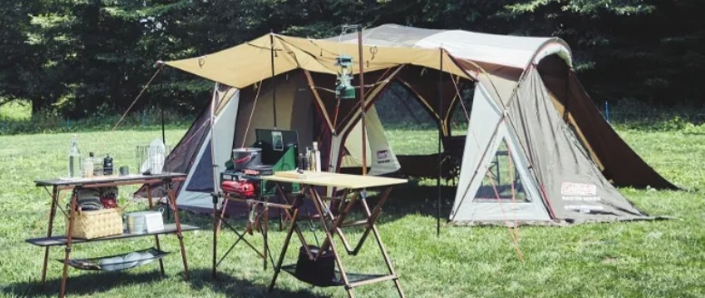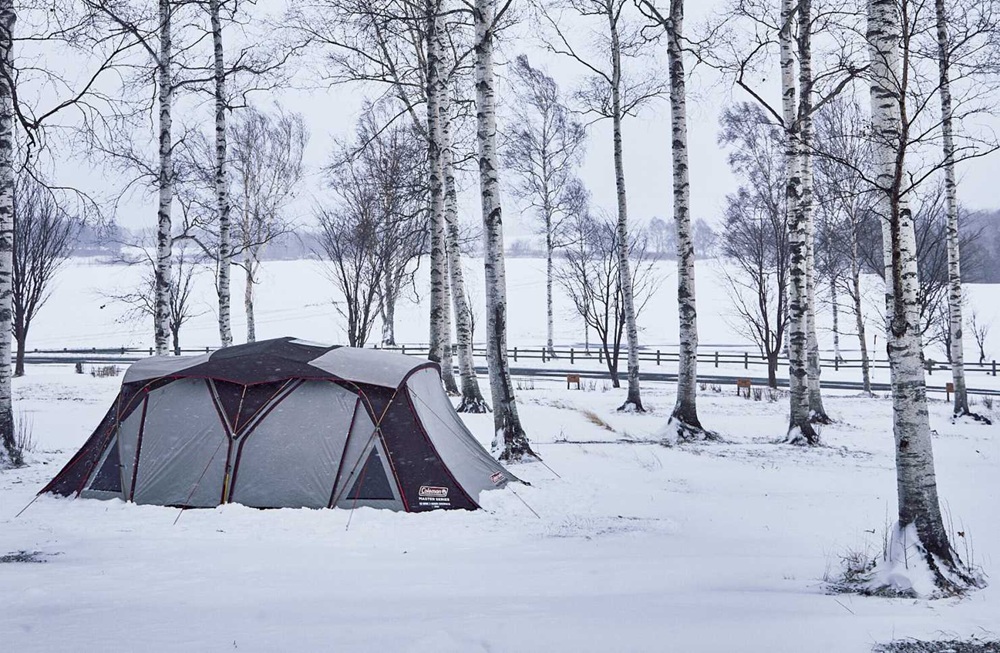 冬のキャンプでは、冷気を遮断できる構造のテントを選ぶことが大切です。たとえば、全周にスカートと呼ばれる布地が付いた2ルームテントは、冷気の侵入を防げる防寒性が高いアイテムです。