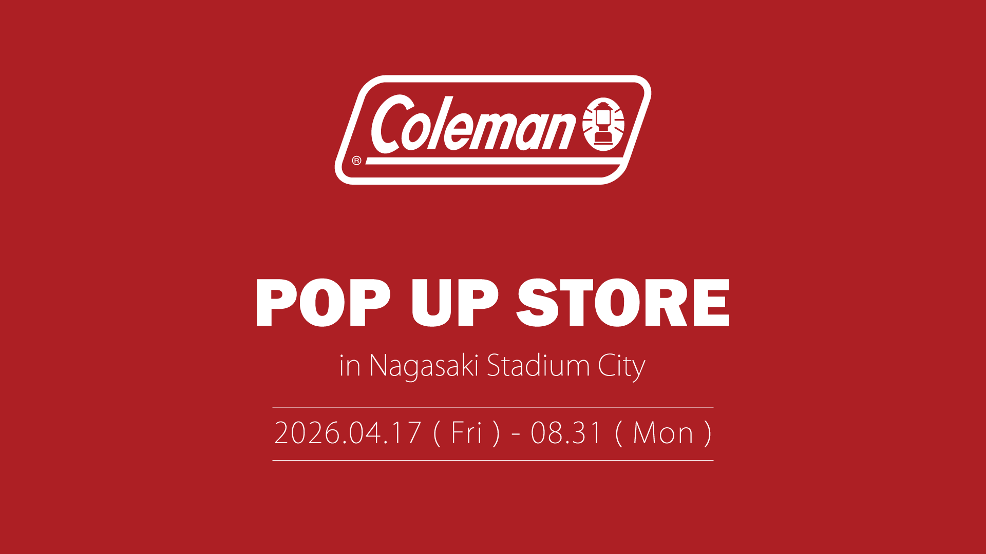 長崎スタジアムシティにて、アウトドアブランド「コールマン」のポップアップストアを期間限定でオープンいたします。
