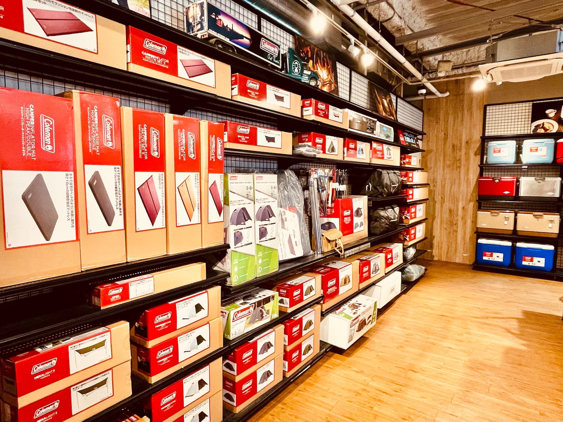 コールマンのアウトレットストア。キャンプギアはもちろん、バックパックなど様々なアイテムを揃えております。