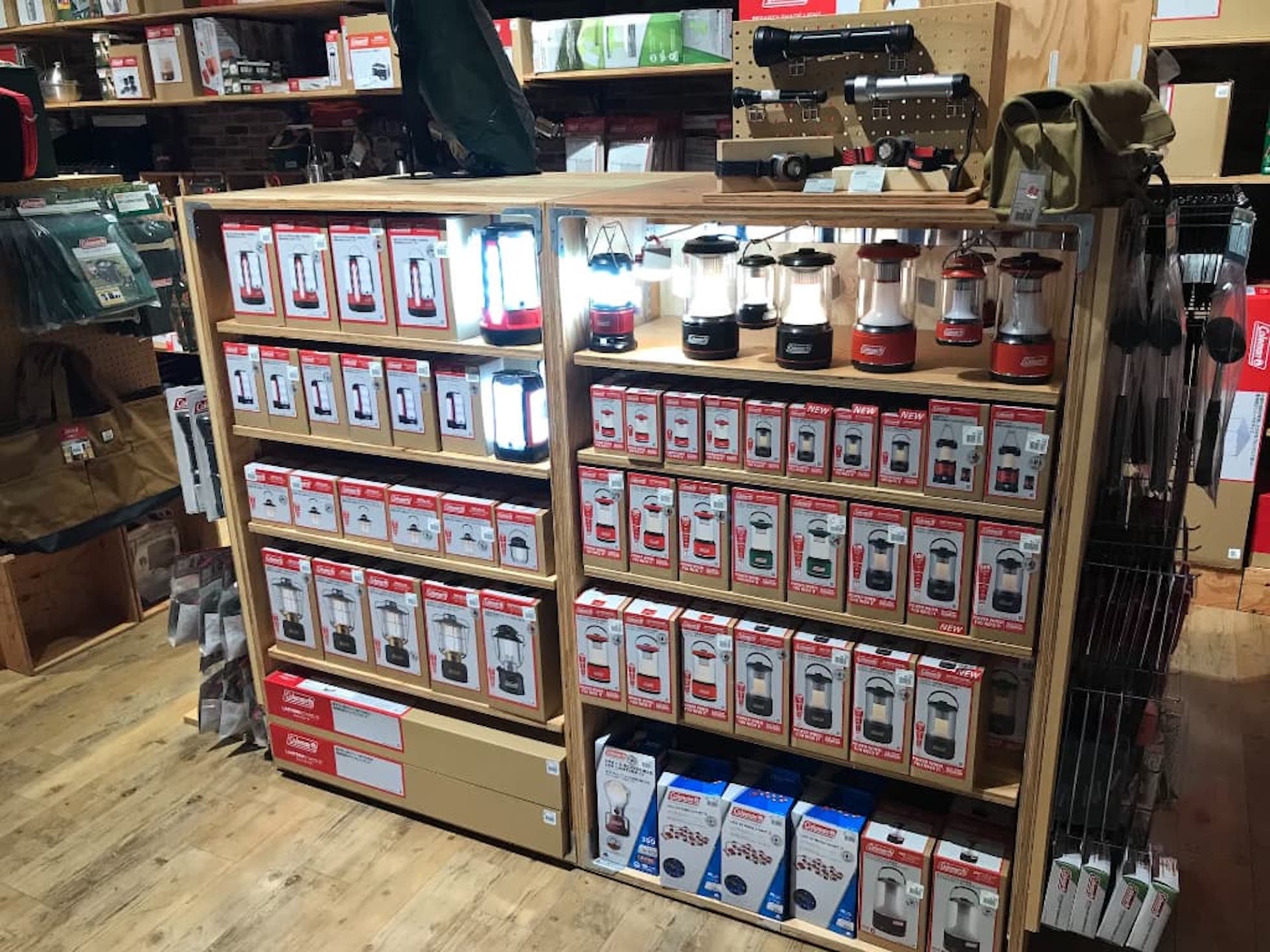 コールマンスタッフ駐在店舗。充実のラインナップで設営撤収などのご相談も承ります。